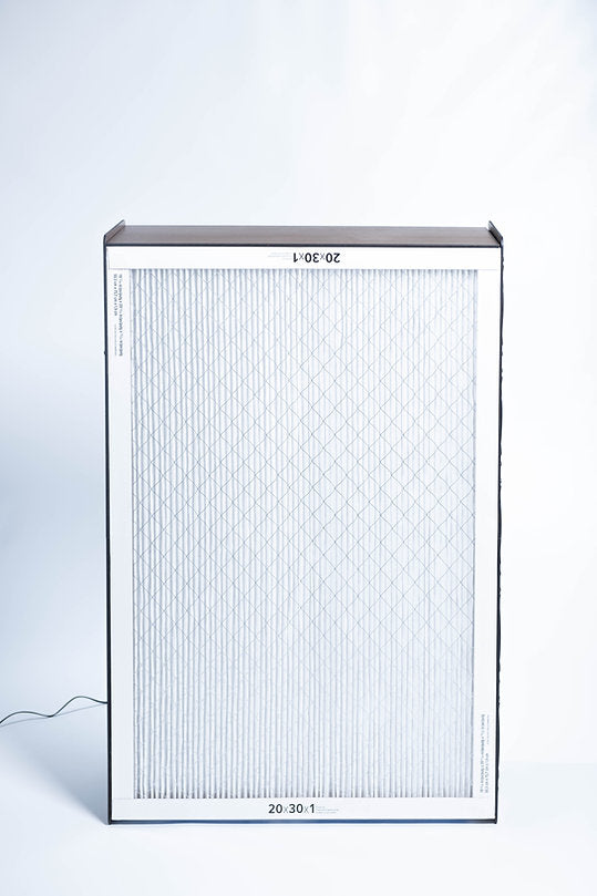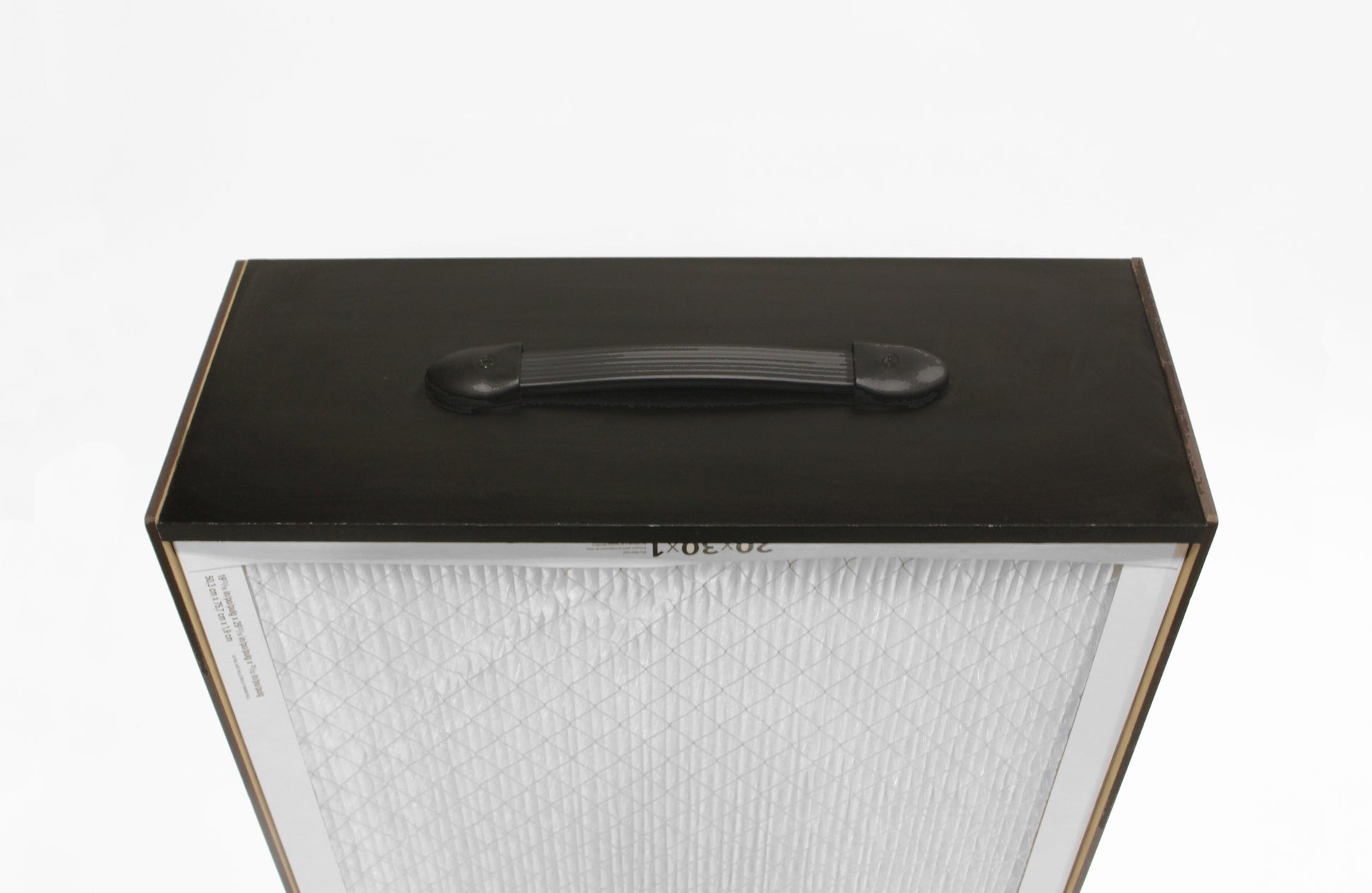 Enjoy beautiful Cherry fan panels on this filtering furniture piece. You can deepen the Cherry grain with a natural oil like Tung Oil. Sturdy 1/2" black melamine bridge the laser-etched fan panels. Friction-fit foam seals for slip-in/out filter changes.