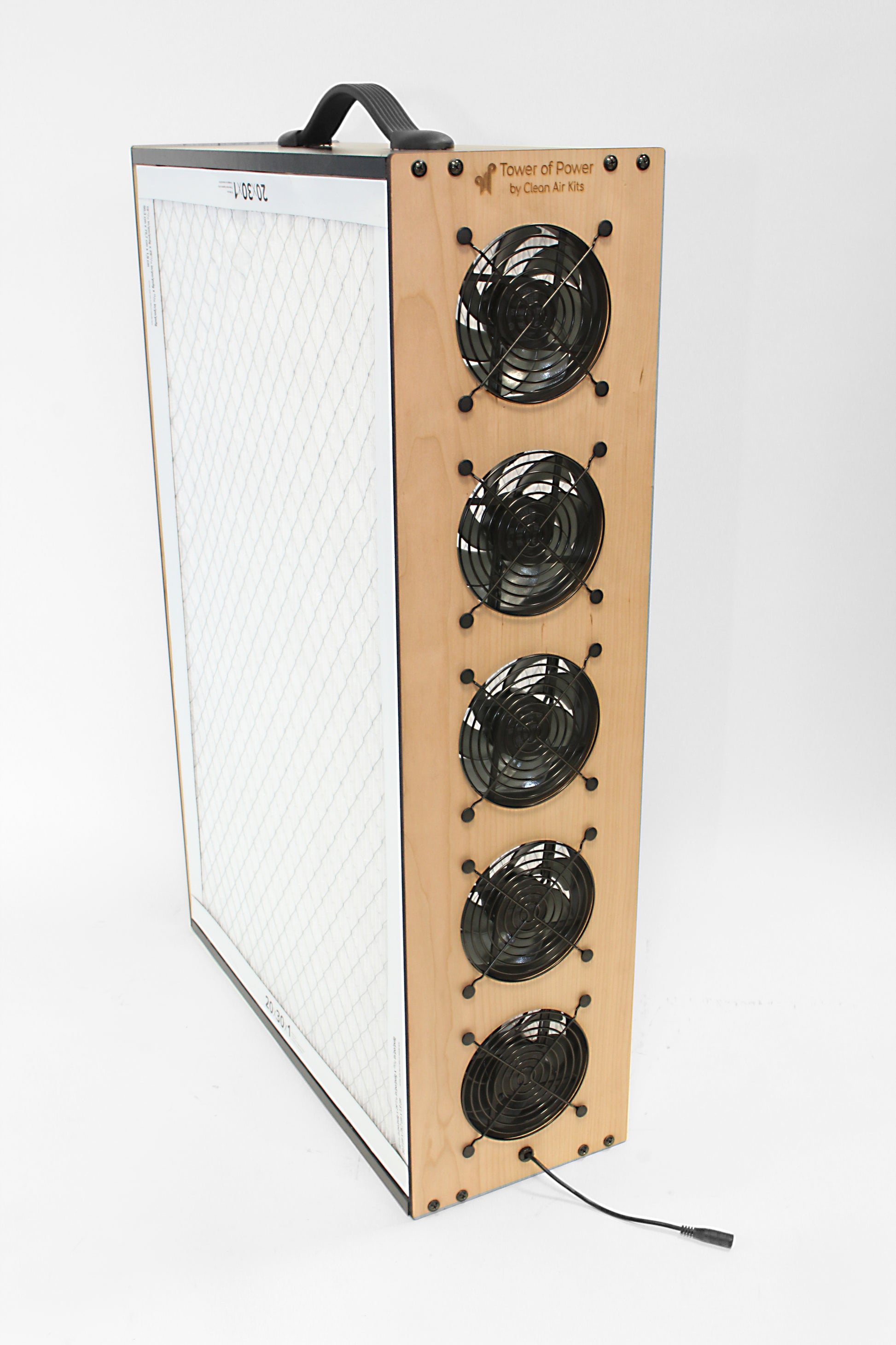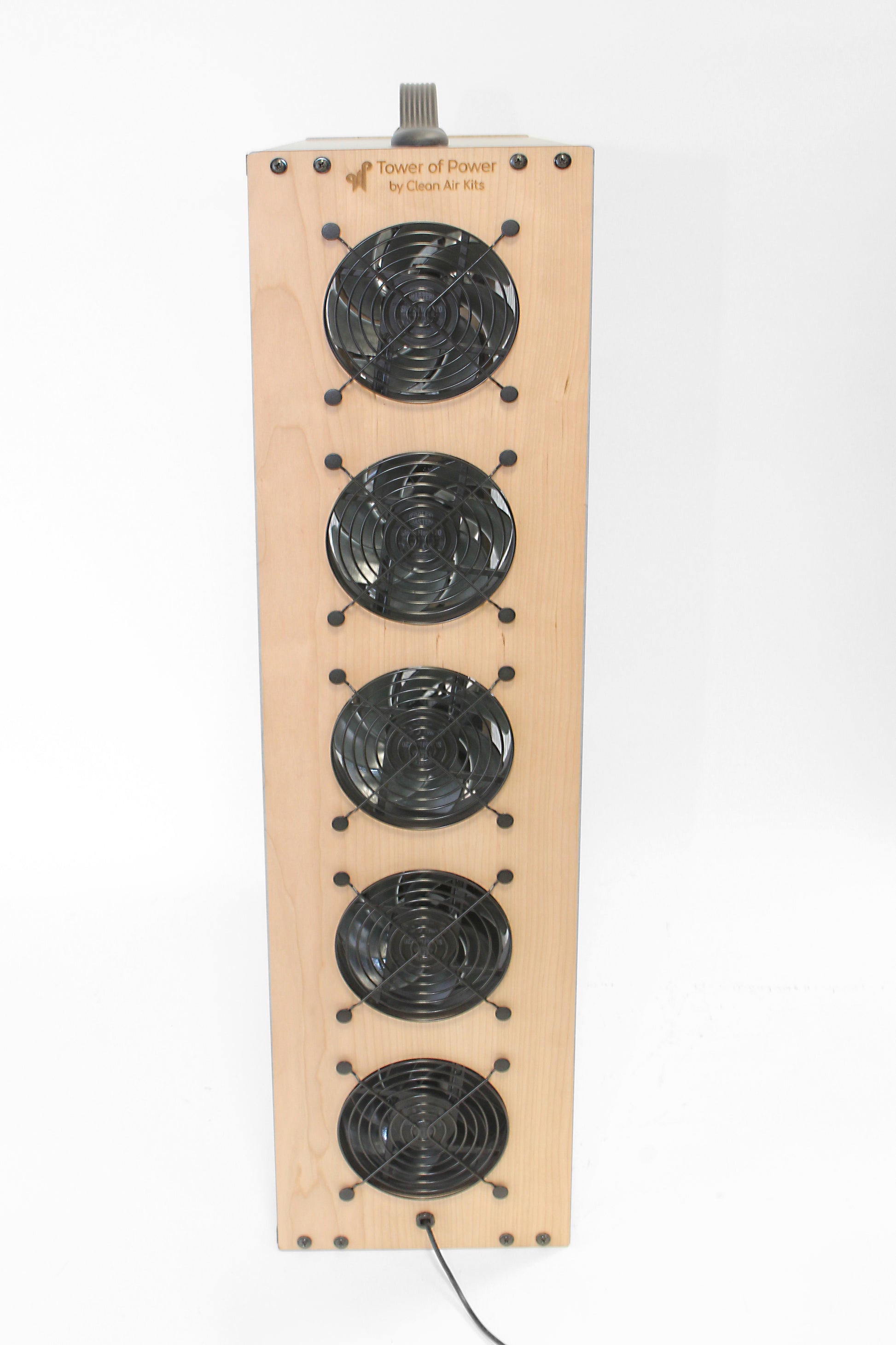 Tower of Power kit boasts six 120mm CoolerMaster SickleFlow and four premium 2400rpm Mobius 120p pressure fans, for balanced white noise and unparalleled performance. This modest monolith boosts typical family rooms by 6-8 ACH and 9000 cb ft classrooms or large conference rooms by over 3 ACH. The Tower of Power is amazingly quiet for such high capacity: 38 dB sound pressure (46 sound power). Attractive handle included.